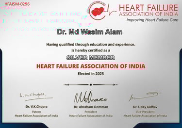 Dr. MD. Wasim Alam, MBBS, MD (Internal Medicine), FID, Fellow in Cardiology (UK), is an Non-Invasive Cardiologist & Diabetologist at Dr. Wasim's Heart & Diabetics Care Clinic, Malda.